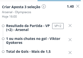 Palpite Seguro do Tipster: Arsenal para vencer + Viktor Gyokeres 1 ou mais chutes no gol + Total de Gols – Mais de 1.5 gols | odds 1.40