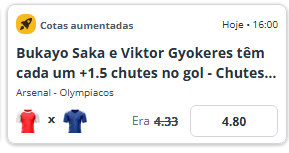 Cota aumentada da Sportingbet para Arsenal x Olympiacos