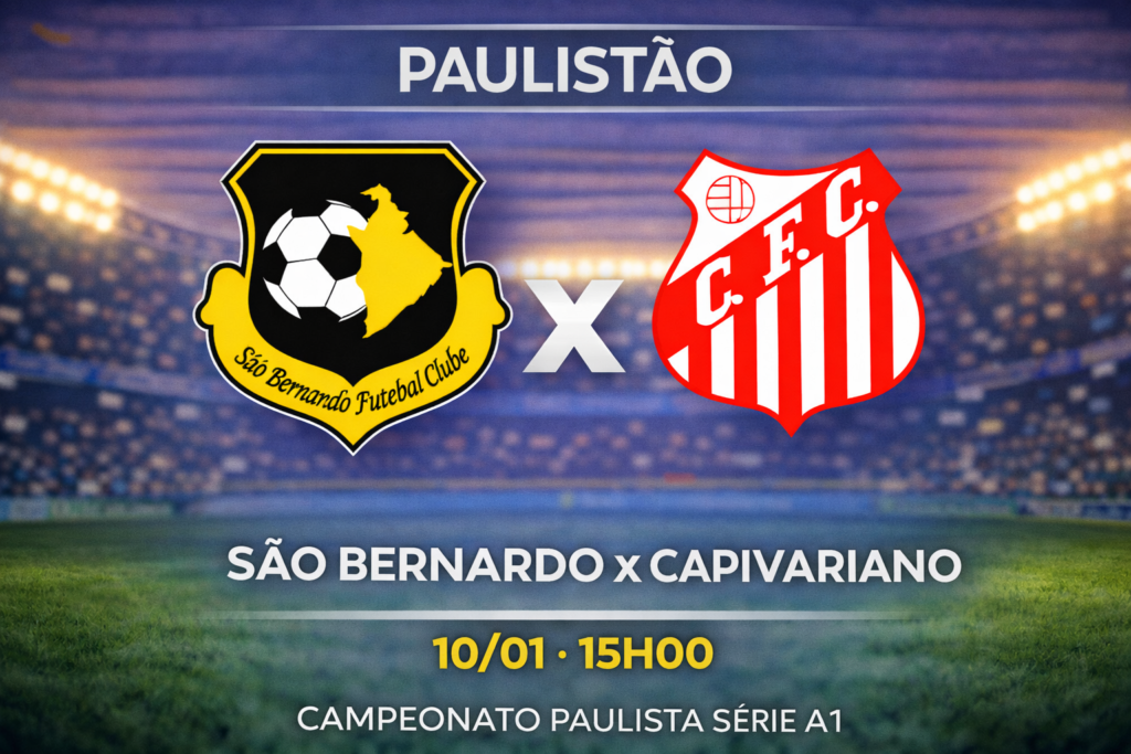 São Bernardo e Capivariano se enfrentam pela primeira rodada do Campeonato Paulista. O jogo está marcado para o sábado, 10/01/2026, às 15h (Brasília), no Estádio 1º de Maio, em São Bernardo do Campo.