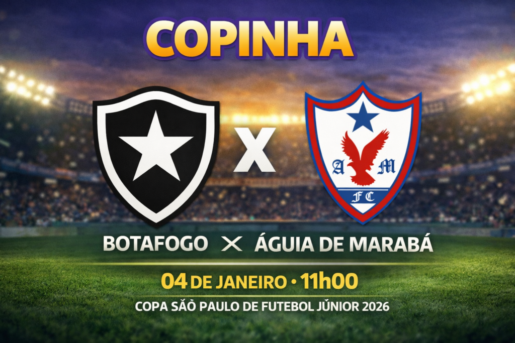 Botafogo e Águia de Marabá se enfrentam em jogo válido pela primeira rodada do Grupo 22 da Copa São Paulo de Futebol Júnior 2026. A partida está marcada para o domingo, 4 de janeiro, às 11h (Brasília), no Estádio Joaquim de Morais Filho, o Joaquinzão, em Taubaté-SP.