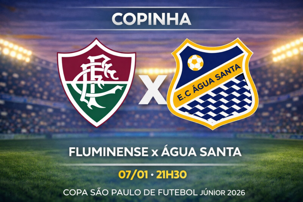 Fluminense e Água Santa se enfrentam em confronto válido pela primeira rodada do Grupo 25 da Copa São Paulo de Futebol Júnior 2026. O jogo está marcado para a segunda-feira, 5 de janeiro, às 21h30 (Brasília), no Estádio Municipal Prefeito Gabriel Marques da Silva, em Santana de Parnaíba-SP.
